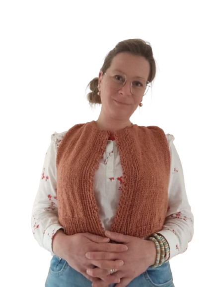 Cardigan zonder mouwen “Yasmine” – Handgemaakt, duurzaam & uniek (Fair Fashion)